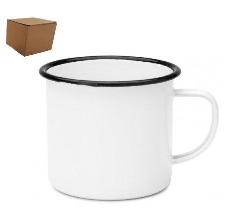 Enamel Mug White/Black Rim 350mlH 80mmD 86mm