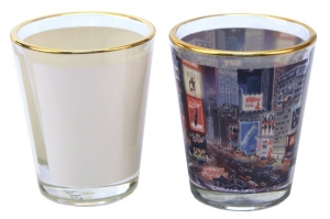 SHOT GLASS-SUB CLEAR/WHITE/Gold Rim