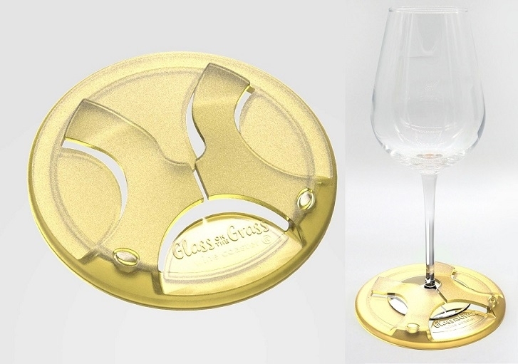 Glass on the Grass™ is the lightweight base that turns any wine glass into an outdoor glass that you can actually put down on grass, sand or stone making it perfect for picnics and parties. It’s perfect for picnics, BBQs, camping, pools & spas, beach holidays, outdoor events, outdoor cinema, outdoor weddings, camping, corporate picnics, corporate gifts.  It’s provides the perfect branding opportunity!